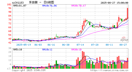 周三,沪深A股双双转换,而耗尽电子板块相拒抗跌,个股方面,东田微(301183)股价收货“20CM”涨停。27日早盘,东田微弱幅低开,开盘后,该股在成交量合营下震憾走高并封住涨停。适度收盘,东田微股价高潮20%,报收于96.23元/股,成交额为13.5亿元,换手率为26.23%。