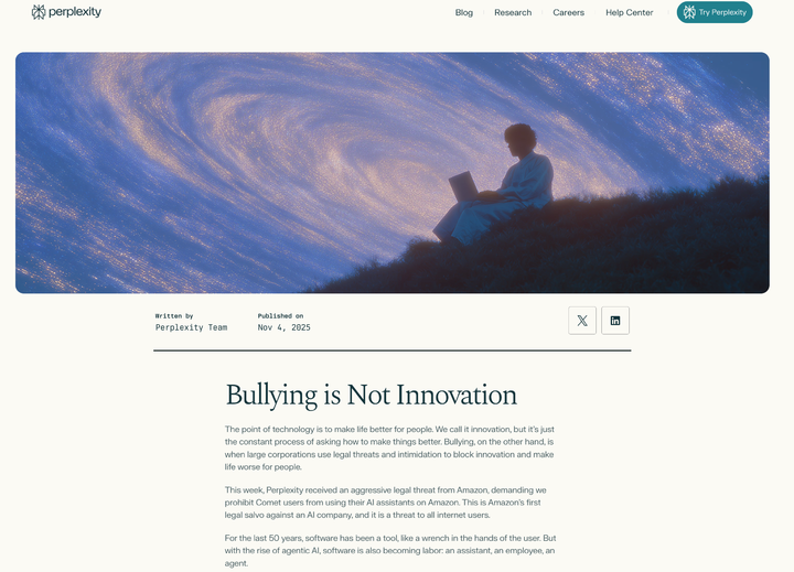 Perplexity 长文称亚马逊「霸凌」其 AI 浏览器