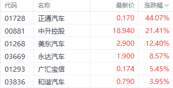 财联社11月11日讯(剪辑 胡家荣)当天港股汽车经销商主意股多半大涨。扫尾发稿,正通汽车(01728.HK)、中升控股(00881.HK)、好意思东汽车(01268.HK)分散上升44.07%、21.41%、12.40%。