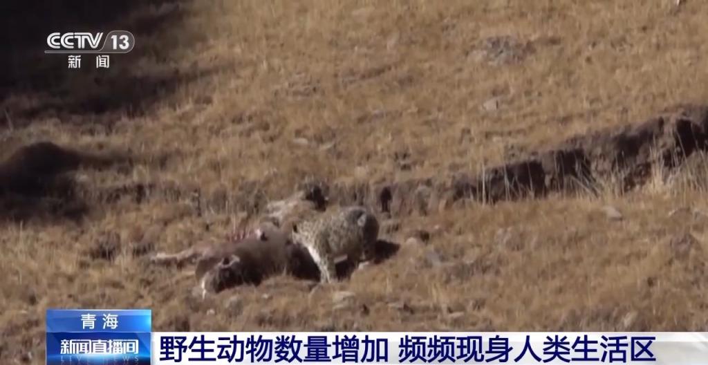 除了狍鹿,雪豹也频频光临。就在上个月,在青海省玉树藏族自治州曲麻莱县巴干乡,生态管护员巡护时,发现一只雪豹在羊群隔邻偷食,守卫羊群的藏獒狂吠示警,遭雪豹驱赶。
